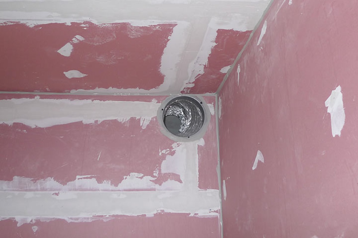 Outside the studio, likewise, the ducts are sealed. Also, we have pre-placed a small support shelf and a ceiling board to hold each baffle box in place.