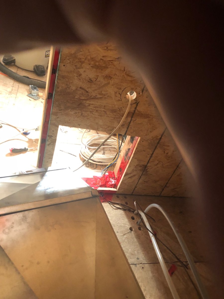 I had to install the 10" round duct work before lifting the box into place because once the box is up I wouldn't have enough room for install the insulation all around the duct work.