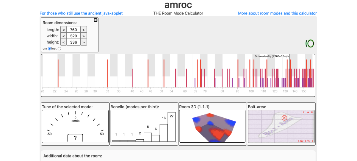 I did also punch in the figures above into a couple of other room mode calculators that were suggested here: https://amcoustics.com/tools/amroc and http://www.bobgolds.com/Mode/RoomModes.htm
