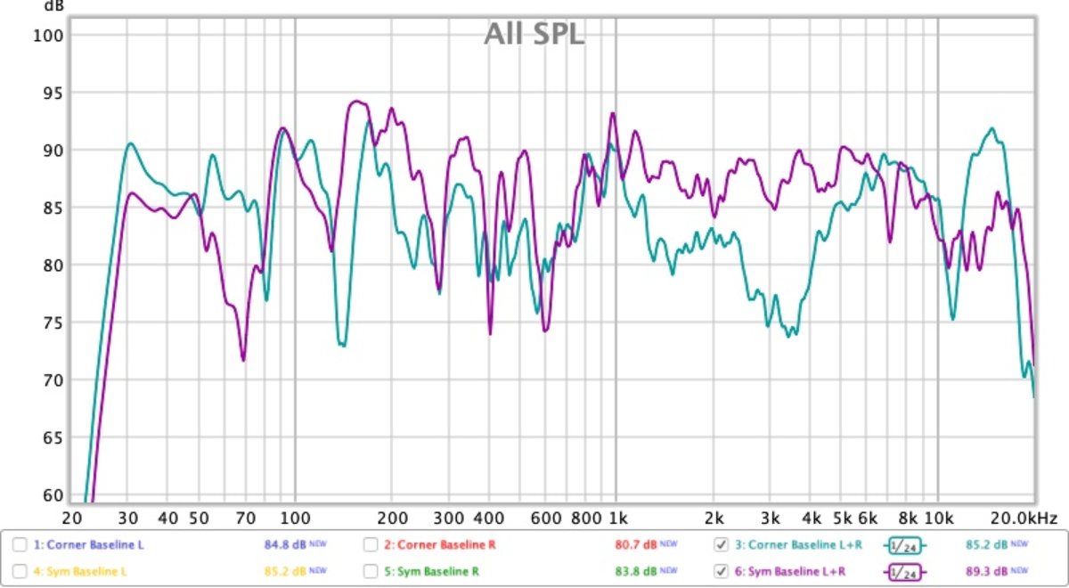 The corner position seemed to raise the DB level by 1-2 db so I had to re-calibrate REW to compensate for this.