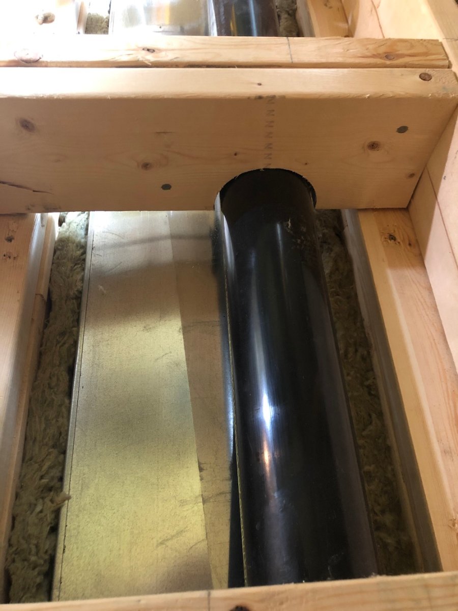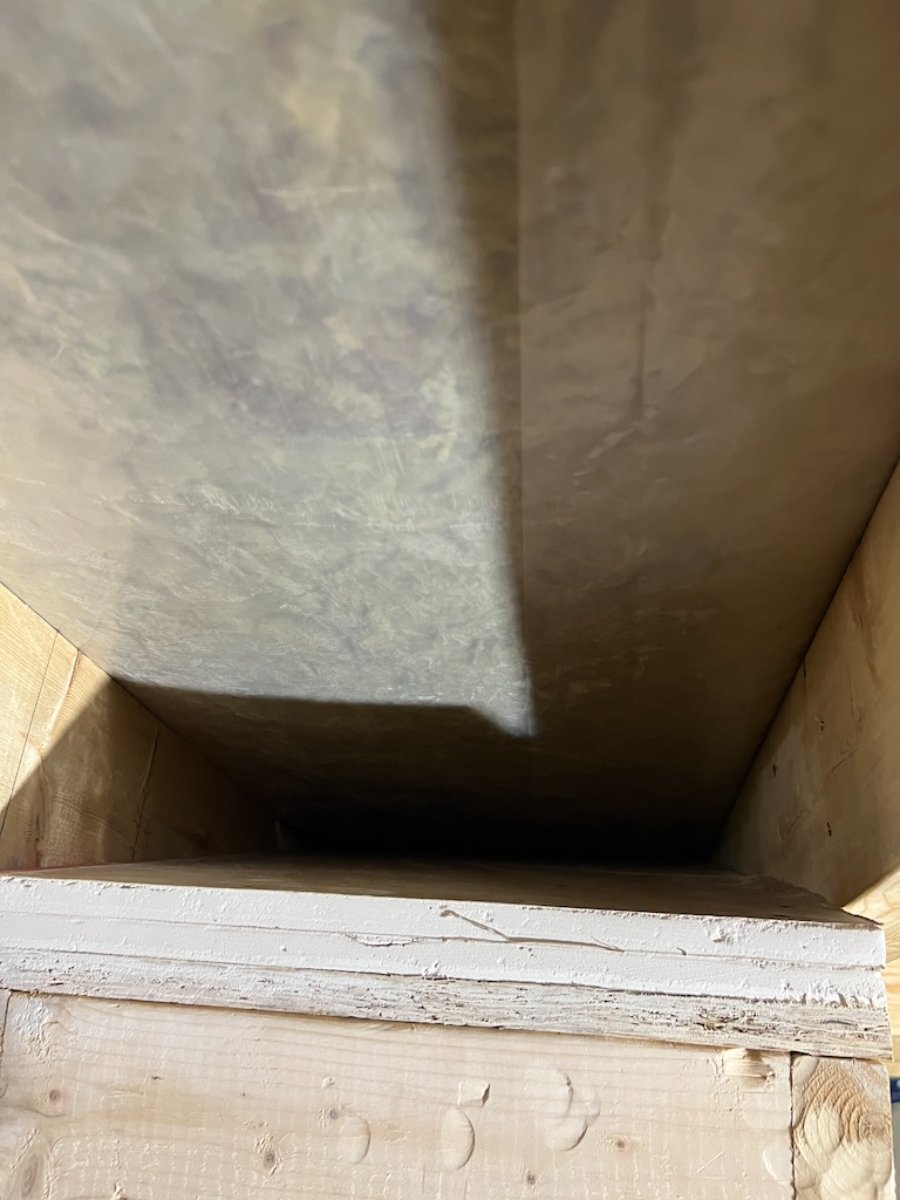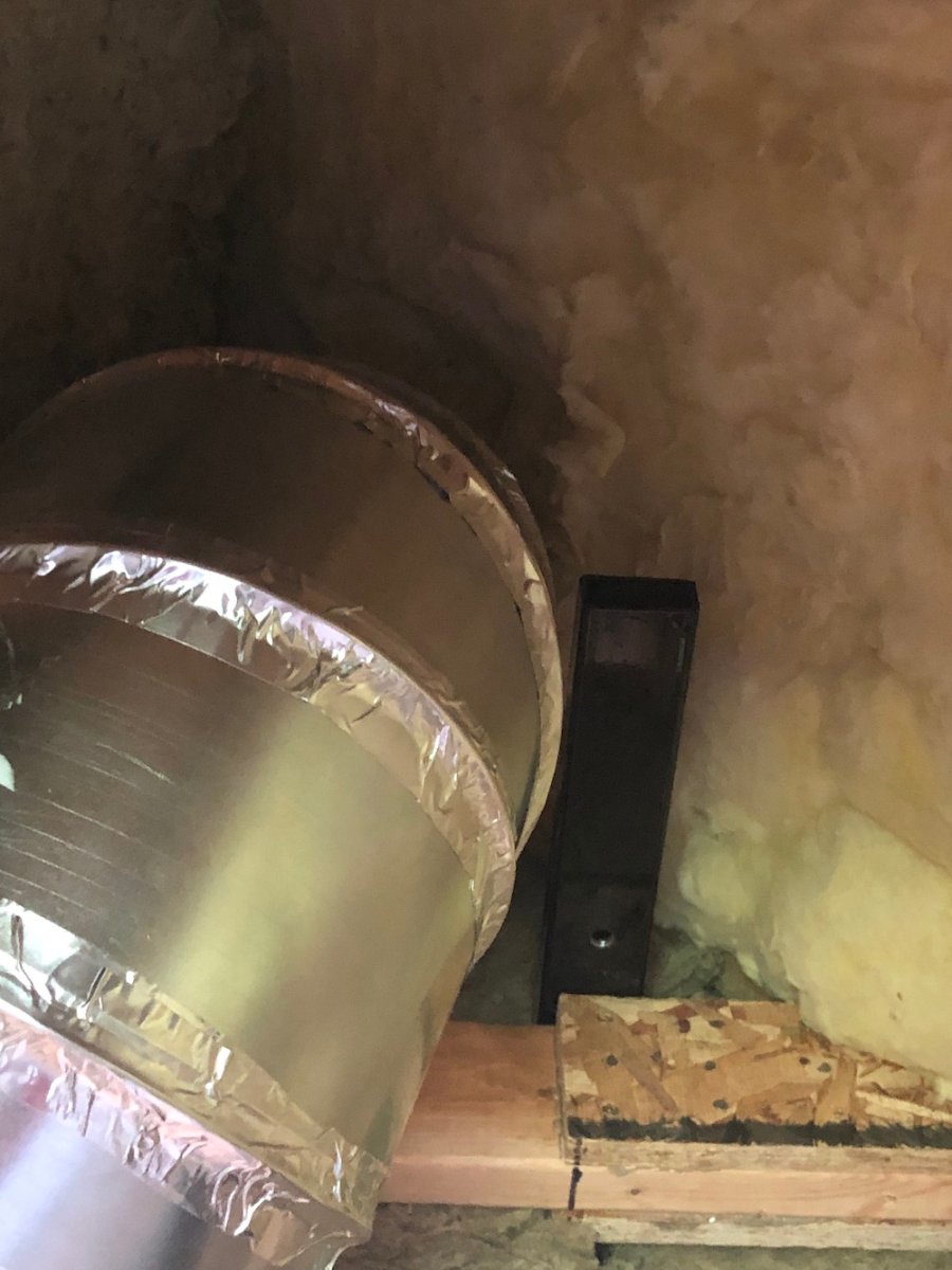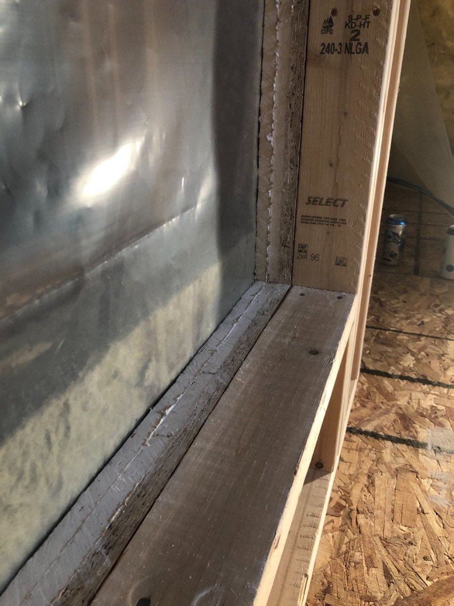 Here you can also see the insulation that fills the gap/cavity in between the outer and inner walls. I ended up using two big pieces of cardboard and sandwiched the insulation batts and ran the cardboard in between the two walls. That was a fun process ... but not really lol.