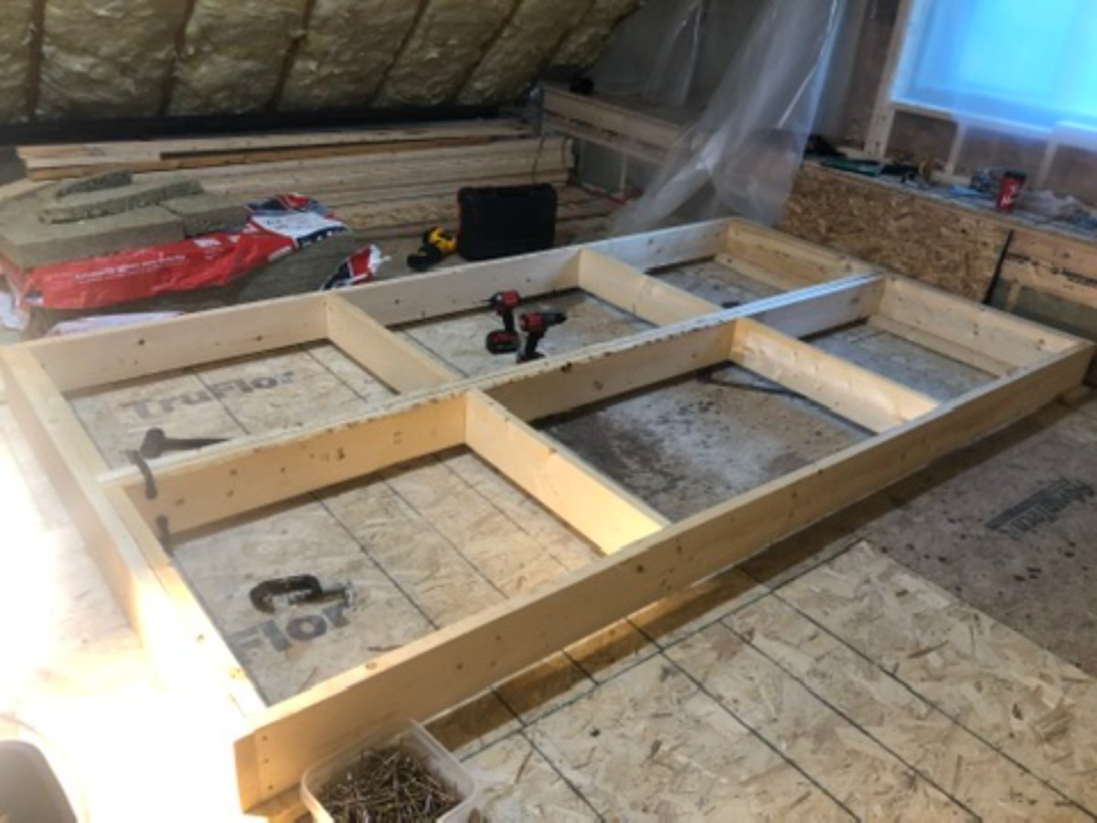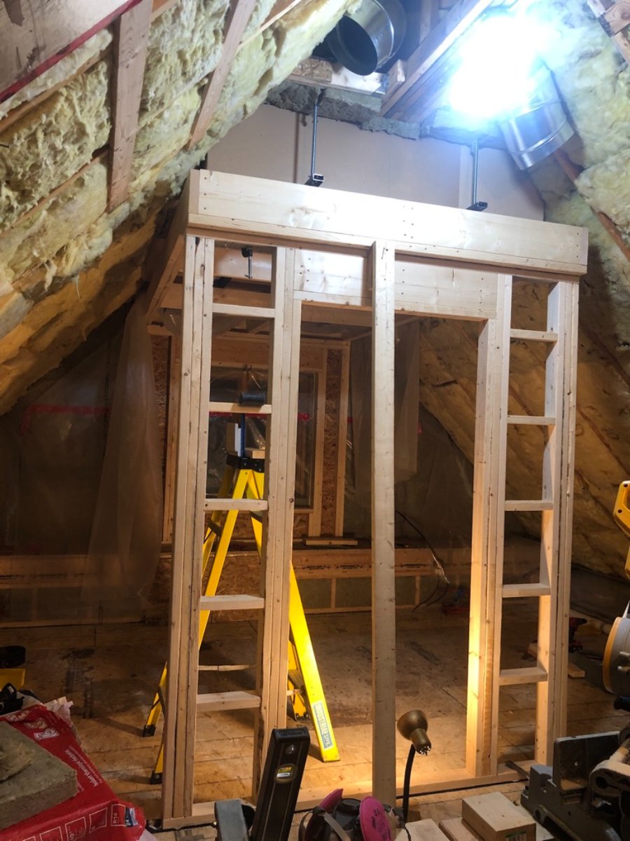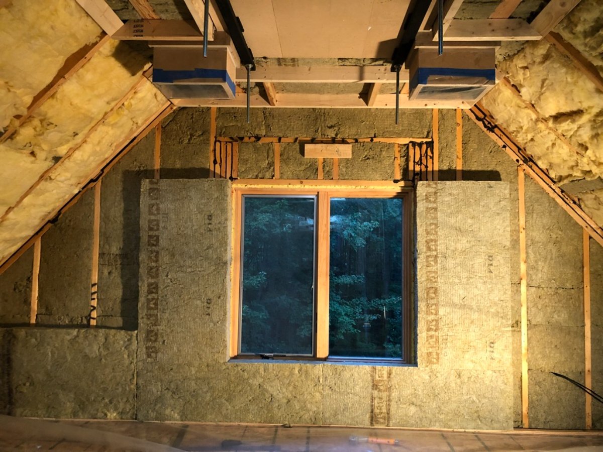 And here's some pictures of the framing/assembly along with other insulation and vapour barrier installation. You can see the ceiling joists that will be resting on top of the front and back walls. I'm making sure there's a good gap between the ceiling assembly and the baffle box assemblies above.