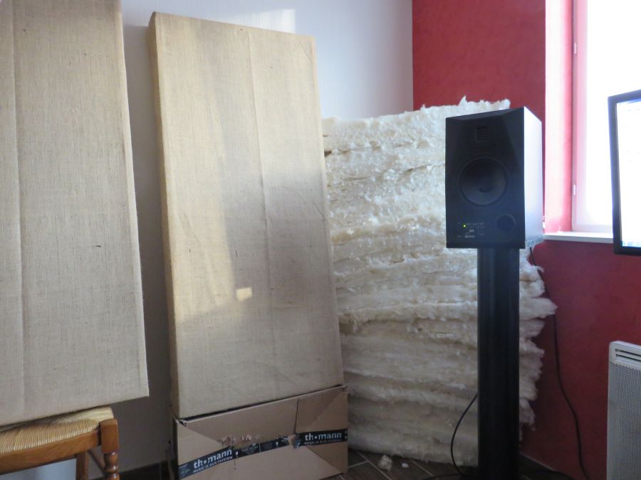 and finally, plus 4 acoustic panels, on the side walls, I made a long time ago. This panels are not intended to stay in the finished version of the room, because I think they are too thin (only 8cm deep), but I found this measurement to be interesting nonetheless to try to anticipate future treatments :