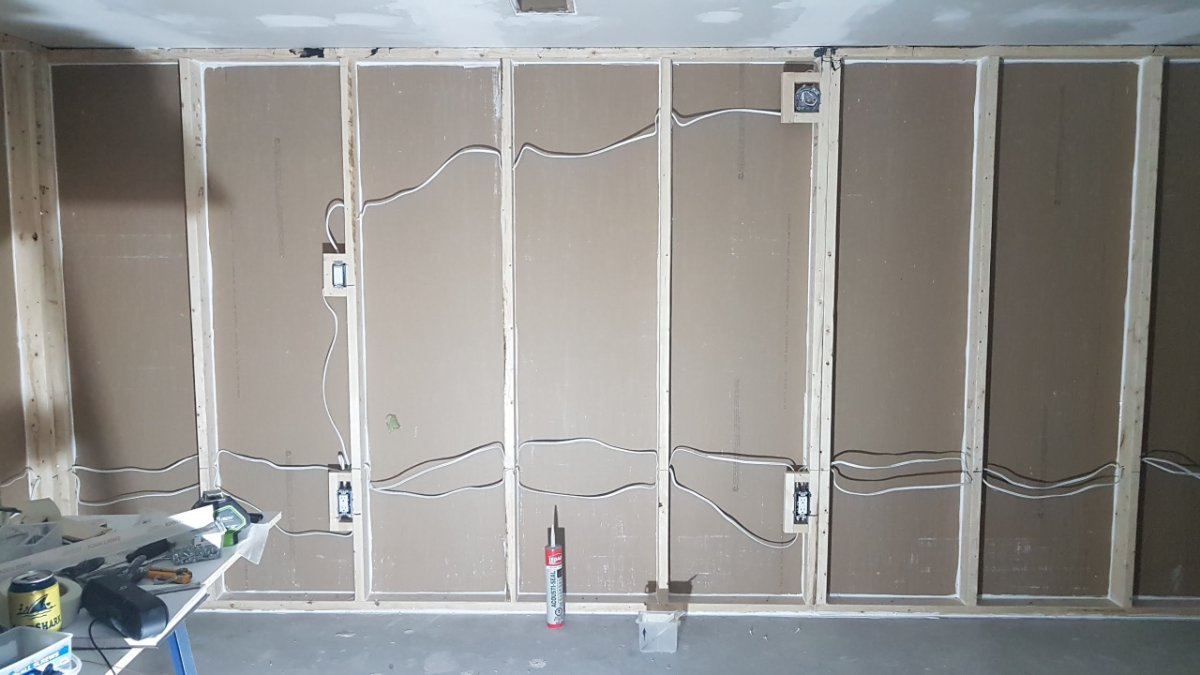 Here we are today. All the drywall is up and mudded. Electrical is in place. Ready for more caulking, then paint and treatment!