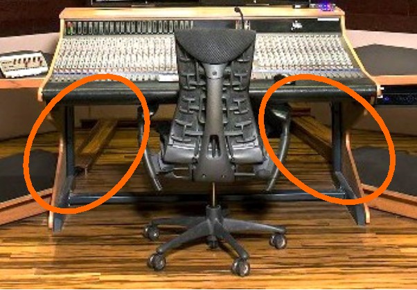 With a typical desk, you'll bring the cables in under the legs, not under the middle of the desk. Your own legs and feet go under the middle!Also, Stuart, could you give me a drawing of the best likely area that the listening position might be? I’m happy to do two sets of flat conduit one to each soffit side or just ome in the middle.