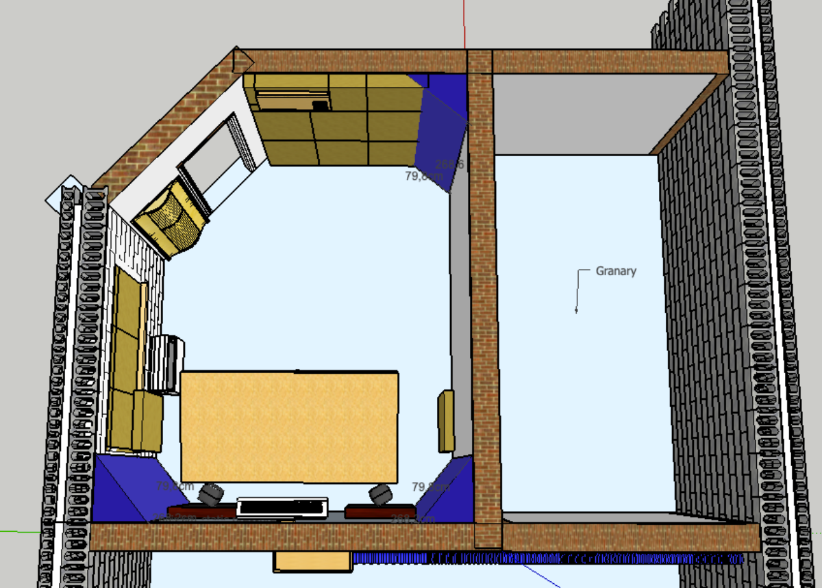 Since this probably marks the start of actual construction phase I updated sketch design per Stuart suggestion to make front panels behind the speakers a bit wider. (Used dynamic absorber component from freebies section of the forum for this, simple and neat!) and that hopefully locks the design (apart from all the little details I'm sure I missed).