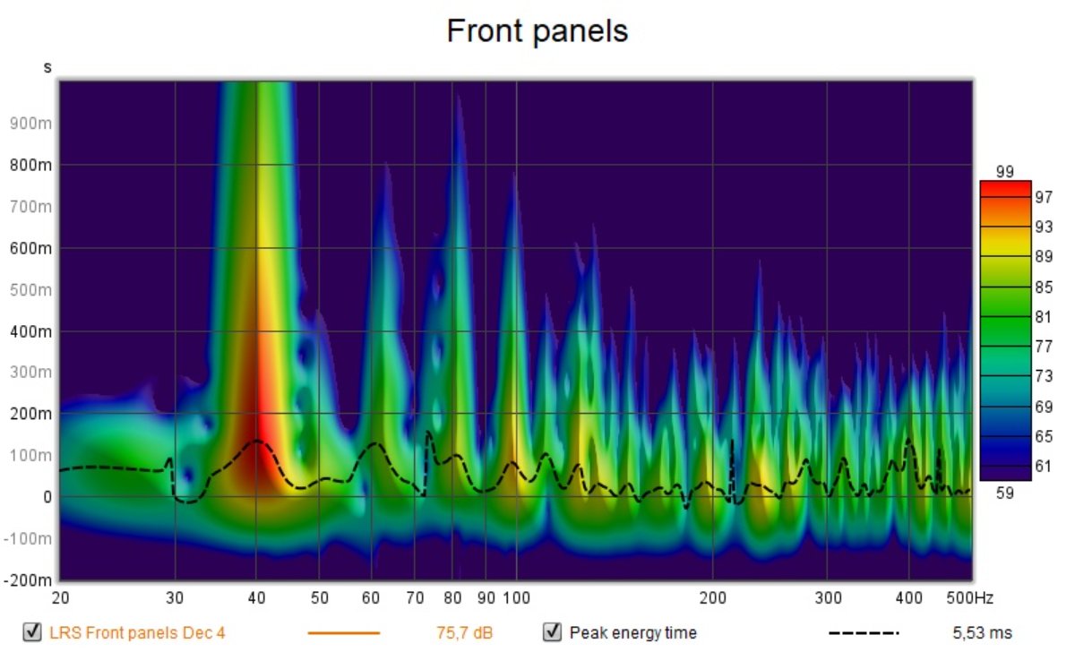 During the weekend I stuffed the window cavity and measured almost 30 dB C isolation improvement there. Then I redid the baseline REW measurement. Next thing I placed placeholder panels behind the speaker and run another test.