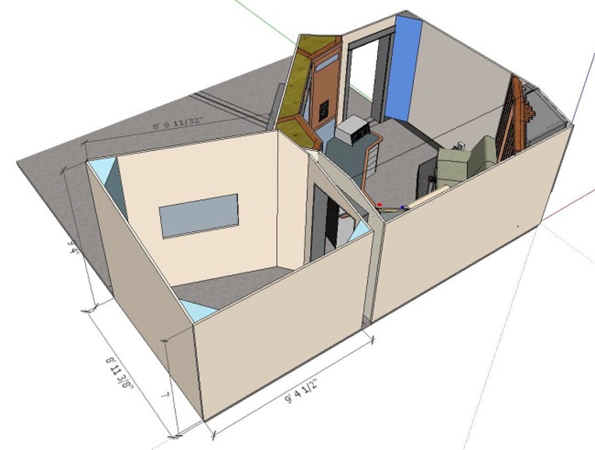 I labored over the inner floorplan for a long time and thought I had it nailed. The leadership was anxious about getting started framing. At my last minute sanity check on the forum before commencing, Soundman2020 once more came to the rescue. He hadn’t seen my HVAC plan to start out with and challenged me whether I had worked out the RFZ angles. I had forgotten! He also thought my side walls didn’t look right. It turned out that my side RFZ reflection spots were EXACTLY where my glass-windowed doors were going to be!!! This brought about layout changes, which moved the doors out of the way, gave us some extra elbow room in the control room and also served to provide a much better place for the ductless heat pump unit. So I got three solutions with 1 change. Thanks Stuart!!