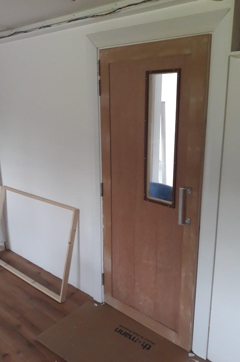 1. I'm about to start making and hanging the studio door, then laying a floor and second fix trim.