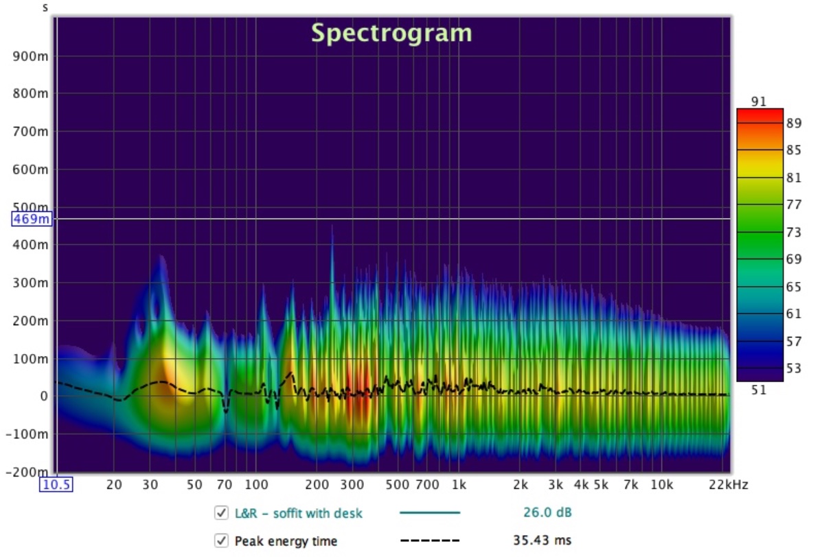 Your soffits have done an excellent job, look at the reduction in decay time in the spectrograms;