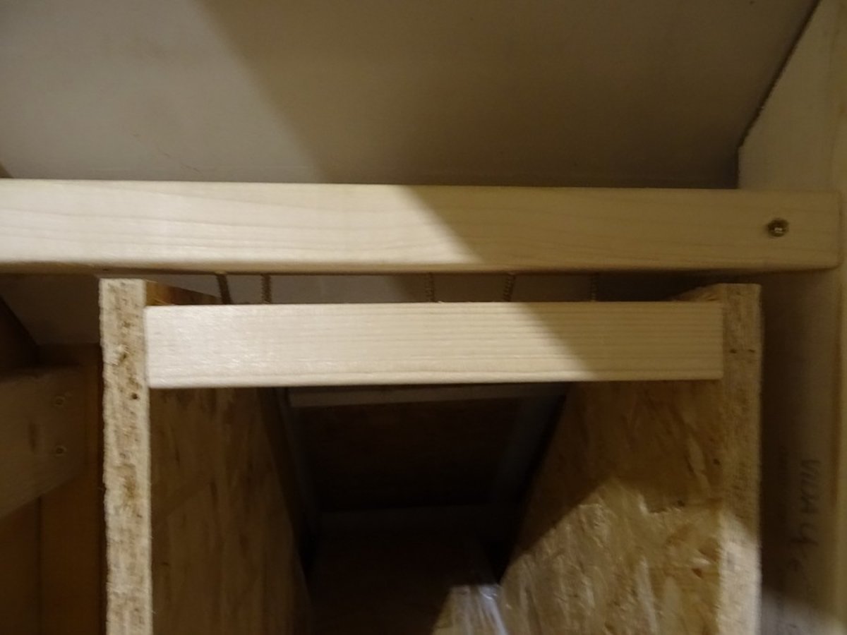 Screwed into another noggin along the top. There is also a "noggin" attached to the top ears of the silencer here. This way the good shear strength of the OSB can be used to full advantage. This attaches the silencer very firmly to the stud wall, it barely moves at all even with a lot of force.