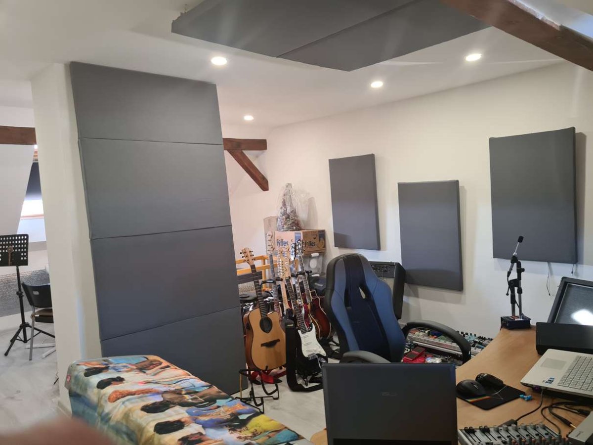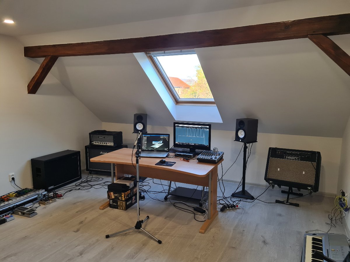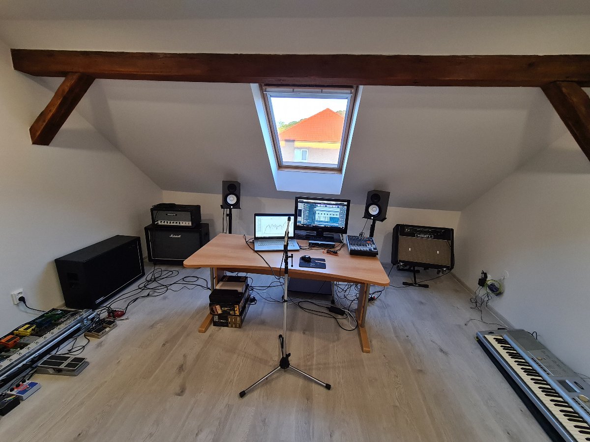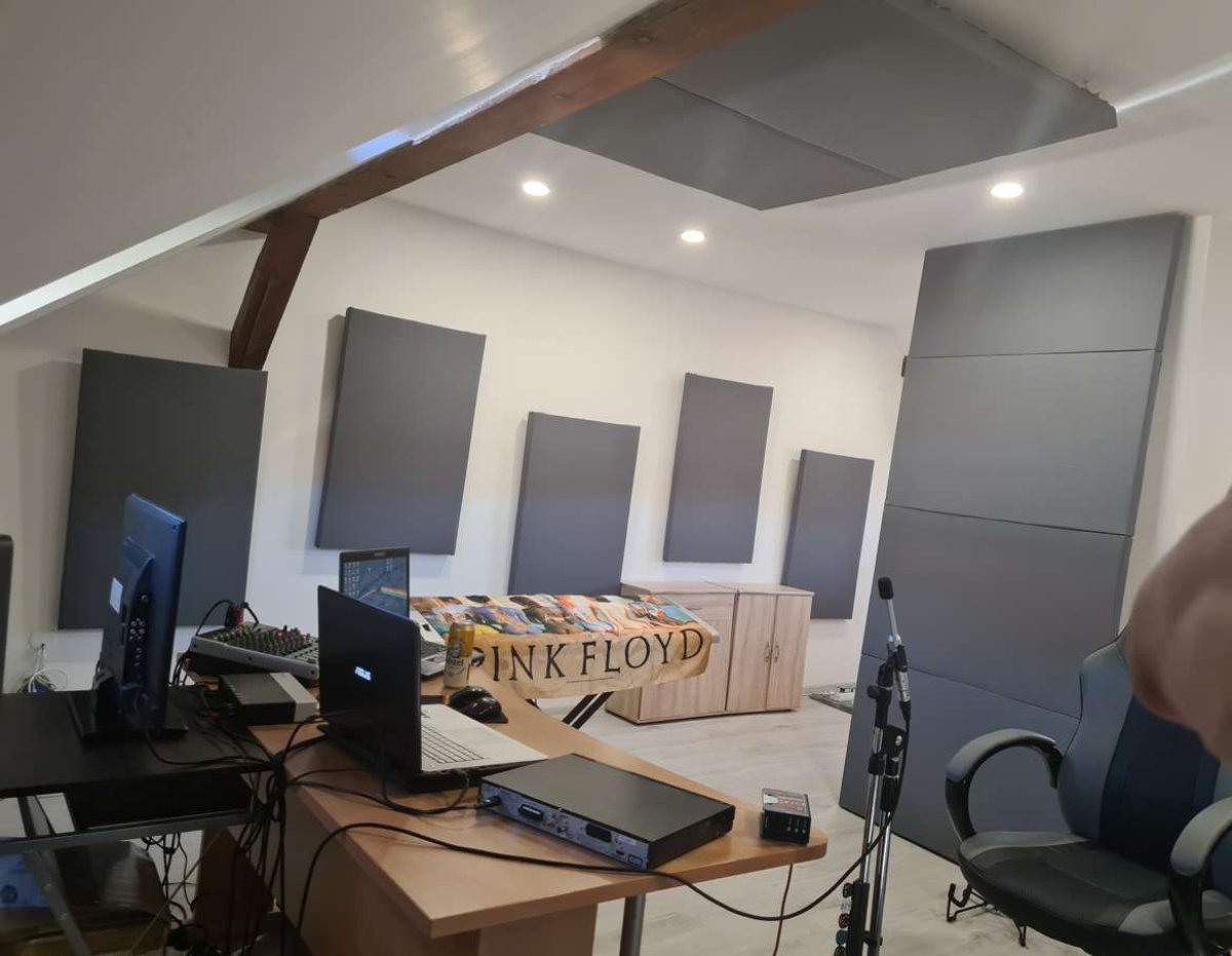 Thank you Soundman for analyzing the measurement and explaining the problems. It's an amateur studio, I don't need professional parameters. The room has its limitations, it will be used only for home recording, mixing. In the untreated back part of the room (behind the chimney) I wanted to install pyramid or barrel diffusers on the sloping walls, or on the back part of the chimney. Now I doubt it will probably not change the fundamental problems of the room and I should focus on the part of the room monitors-chimney. I still have 5 panels of mineral wool 50 mm and one panel hr 100 mm. I put the panels behind the monitors, but I didn't notice any difference in the measurement. Maybe it would help to put a 10 cm panel on the chimney at head height, monitors? I've already thrown away the big table. I'm going on vacation tomorrow, but when I come back I'll try various changes and measurements. If you still have tips on what to focus on and where to try to place the remaining panels or diffusers, I will be happy. The table is symmetrical (arched in front), did you mean the keyboard under the Pink Floyd flag?
