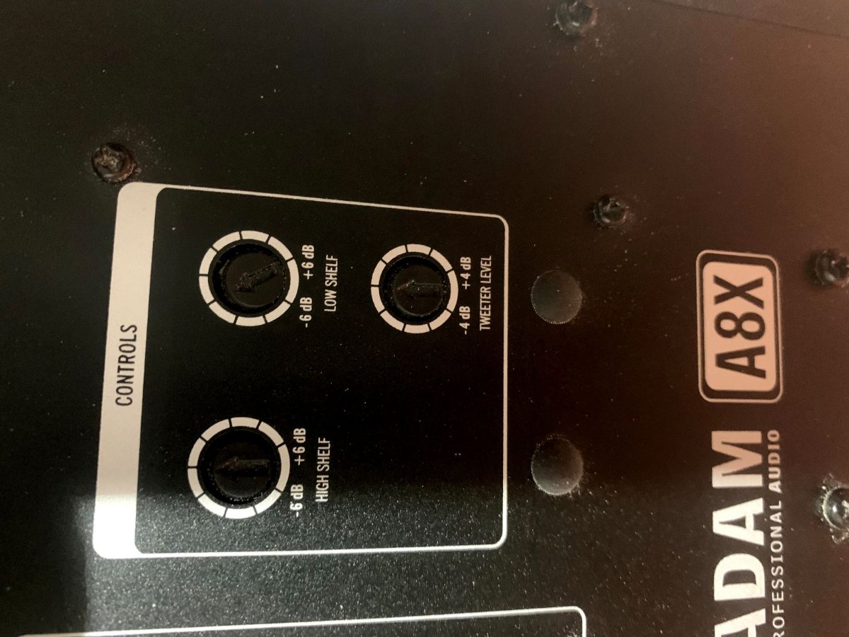 There are settings on the A8X for both a High and Low shelf. before installing, I trimmed the low shelf by about 1.5db (or 3 clicks), it was a guess, based on the expected increased bass boost from soffit mounting... Those soffits are NOT easy to take off, and the speakers are not easy to pull out of their boxes, so I wanted to try to hedge a bit. If I have clear direction that I need to adjust them, I will, but wanted to get as close to dialed in as possible before resorting to removing the baffle. (Which, with the adams, you have to, since the little angle at the top keeps the speaker in).