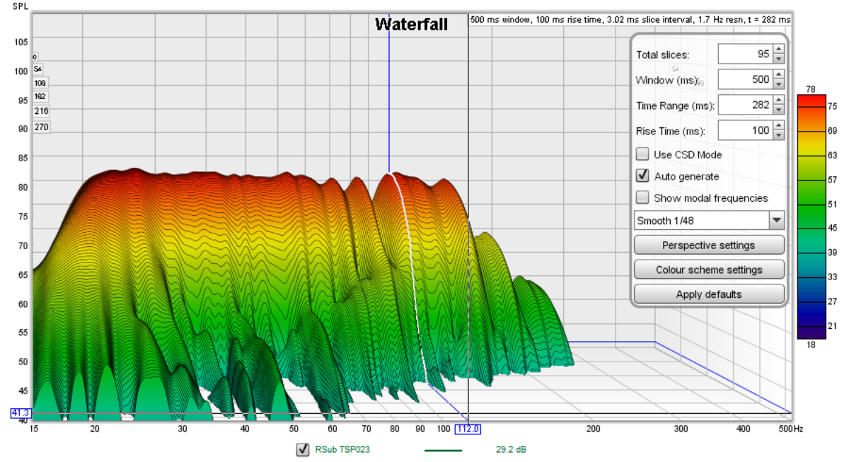 Right now I'm looking at other options, and one that I'm liking is the Mackie SP260. It is not really meant for this job at all, but it works very nicely for it! It's actually a speaker processors (2 in, 6 out), but does have some neat features, and it uploads filter settings through a USB connection, flawlessly. I'm working with a client right now on digital tuning for his control room, using the SP260, and here's what it is capable of. Keep in mind that this is "work in progress", nowhere near complete, and we are just doing one of the subs at present. Here's what that sub looked like a few days ago: ... and this is where we are at currently: As you can see, that's a hell of a lot better! And all of that is just from careful tuning using the SP260. I'm impressed with how well it "just does stuff". On the down side: it is about four times the price of the FBQ...