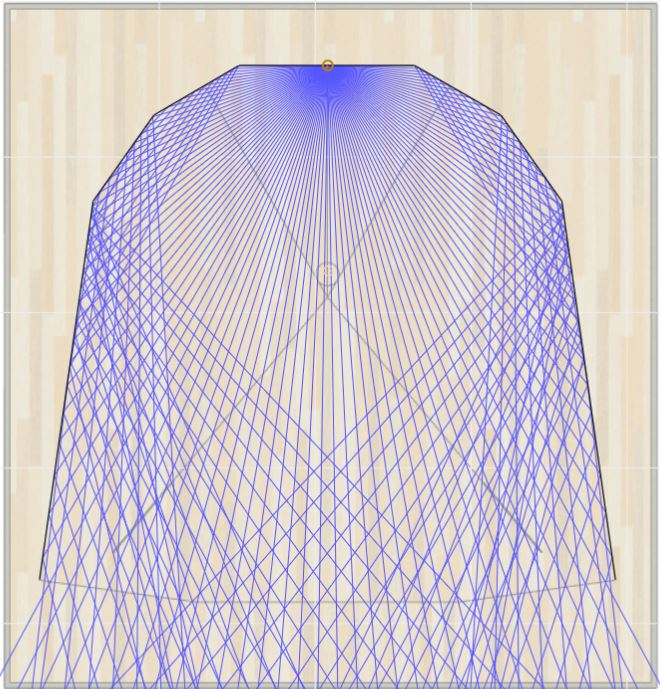 I’ve tried that, and it works for R, L and C, but Lr and Rr are still radiating directly to the opposite baffle: Lr is hitting the R baffle and vice versa. I’m kind of limited regarding Lr and Rr: the more I alter the angels (between 130 and 150° seen from the center axis), the more I will get close to the window with the Rr speaker. This will reduce the amount of space that the baffle could have. And because of that, I lose space for treatment in the back. Also, for best ray trace result, there has to be free space between the L and C baffle and the C and R baffle. So, maybe I should use your rounded slats solution. Is there some literature out there about it? I have an Idea how this should work but don’t know the math behind it...