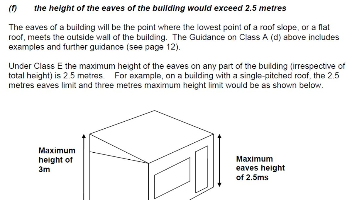 As above. 2.5m (2.8 in my case) is the total max height as I am within 2m of boundary: If The building is to be placed less than 2.0m from the boundary of the property (and mine is 1 meter away from the fences) with a maximum overall height of no more than 2.5m from existing ground level.