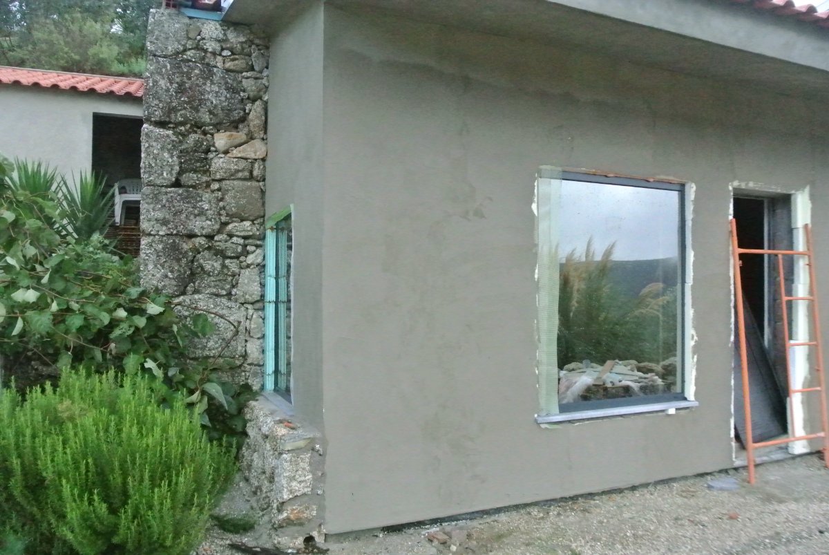 It is Portugal and of course, they did not deliver any windows. The guys just worked on the rendering on the underside of the roof overhang and gave the right side of the building a 2nd coat. That was about all that was done yesterday. Paul visited them and they don´t even have the glass!!!! just the frames so how do they expect to delvier them this week?? Why do they say this when they don´t even have the glass in the frames..??? Crazy….