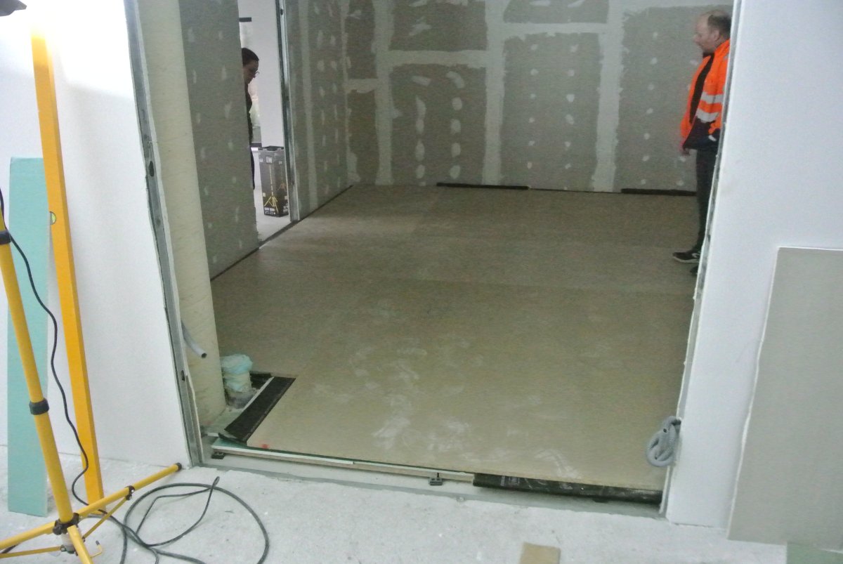 Joules has arrived and looks like he will be working here 3-4 days a week for the next couple of months. They managed to get the floating floor for the control room done today and will start to build the walls tomorrow.. Floor was made with 6 laters suspended on waffle pads.
