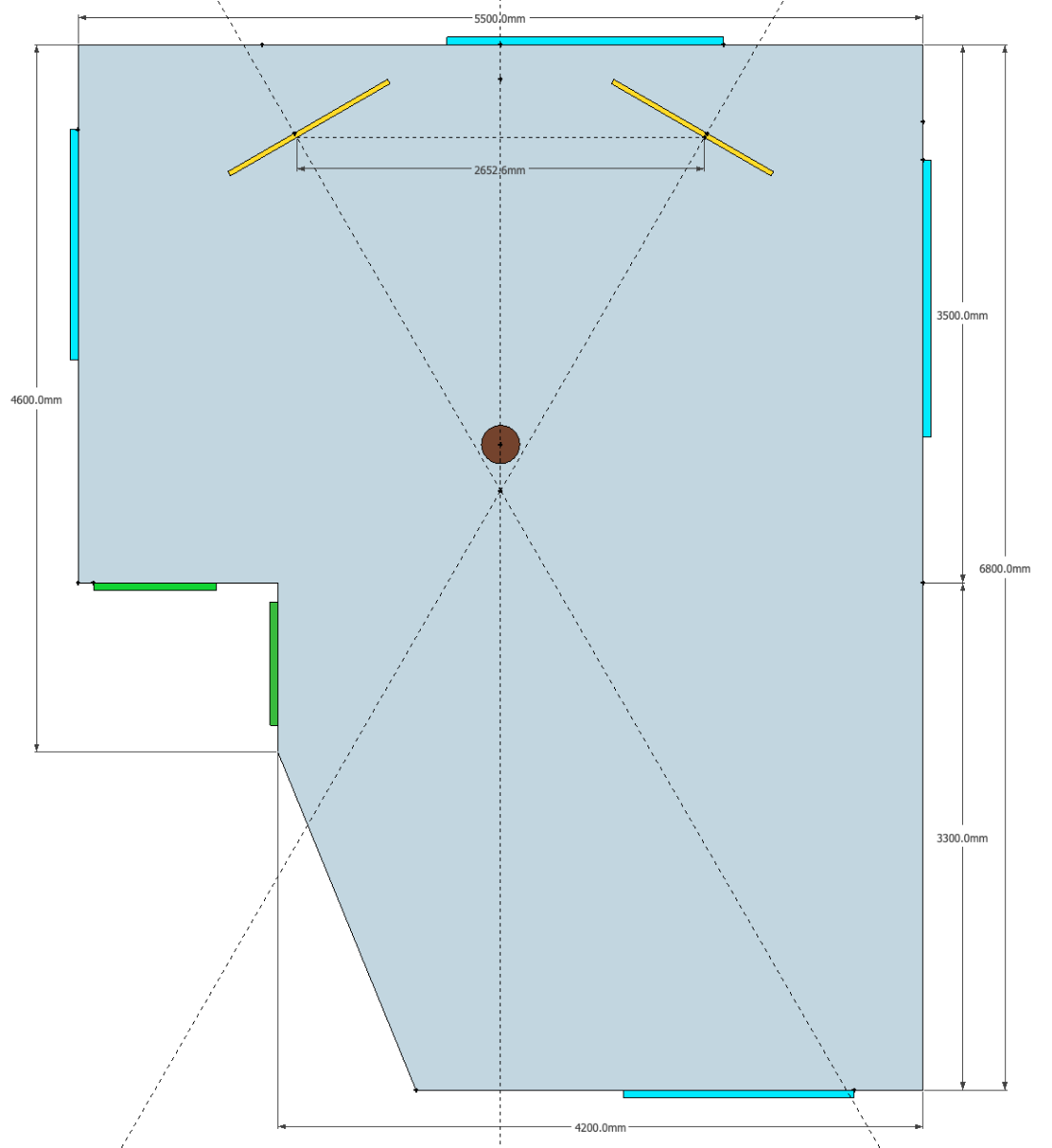 That also clarifies even more the basic treatment design. The rear end of your CR has to be bass trapping, designed for a good control room acoustic response.Goals