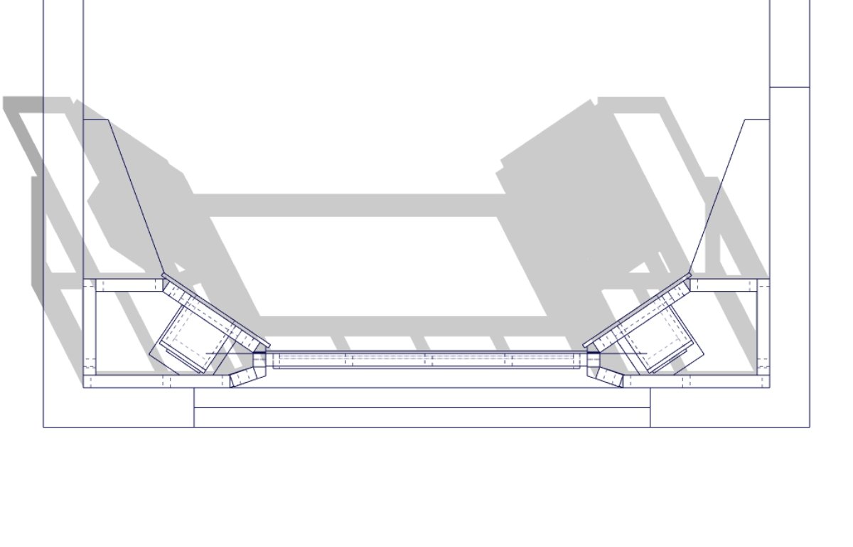 then you have the deep cavity. as we know deep cavities have resonant properties. this will be no different. so, consider that an additional layer of windows which marry up the sides of the soffits and perhaps even change the angled portion above (effectively slightly flattening that space) align with the acoustic ceiling soffits (containing your ducts) could eliminate the resonances there. and thinner (or thicker) glass can alter the isolation and insulation aspects well. in my example the lower part has a frame section - useful for extending the electrical and audio lines to panels there, and would be the depth of an absorber in the bottom to trap the cavity resonances.