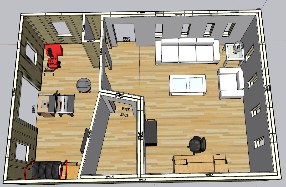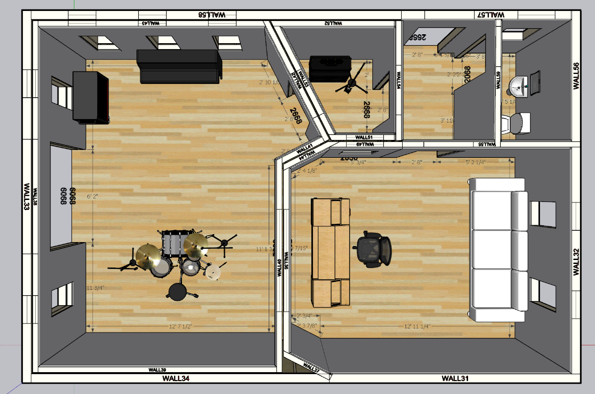 I break ground before the fall, will start a build thread! Thanks for all the help so far. The treatment in these sketchups isnt final. I plan to do a 2 foot deep inside out wall at the rear of the studio that will be a massive bass trap. The front walls by the window into the live room will also be inside out walls with slat resonators. The small iso booth will be fully inside out as well. there will be glass doors between the live room, the air lock, and the control room. This will act as a make shift iso booth so bandmates can see each other if we need some isolation. Otherwise I am super excited to start building! I have a nice HVAC ducted minisplit system going in with a dedicated air changer. Cant wait to get building!