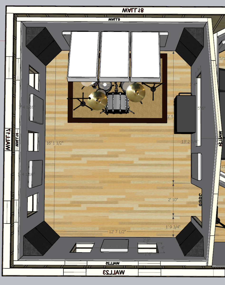 I break ground before the fall, will start a build thread! Thanks for all the help so far. The treatment in these sketchups isnt final. I plan to do a 2 foot deep inside out wall at the rear of the studio that will be a massive bass trap. The front walls by the window into the live room will also be inside out walls with slat resonators. The small iso booth will be fully inside out as well. there will be glass doors between the live room, the air lock, and the control room. This will act as a make shift iso booth so bandmates can see each other if we need some isolation. Otherwise I am super excited to start building! I have a nice HVAC ducted minisplit system going in with a dedicated air changer. Cant wait to get building!