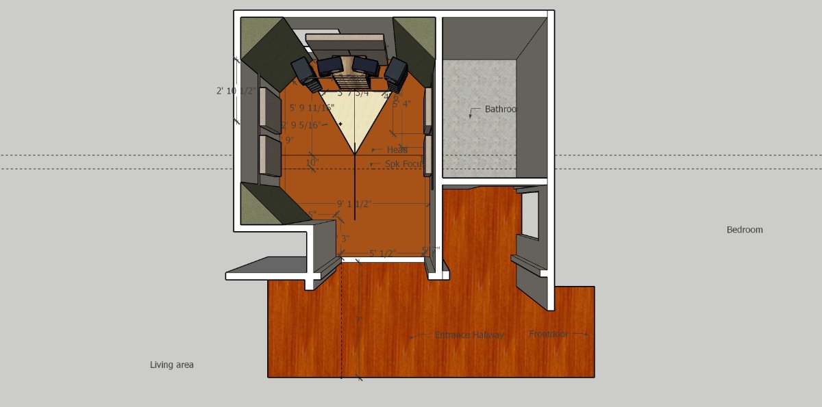 Once my brain started to settle, I was able to make this Temp design into a more solid layout. There was no attempt to soundproof, as the expense would have been massive.