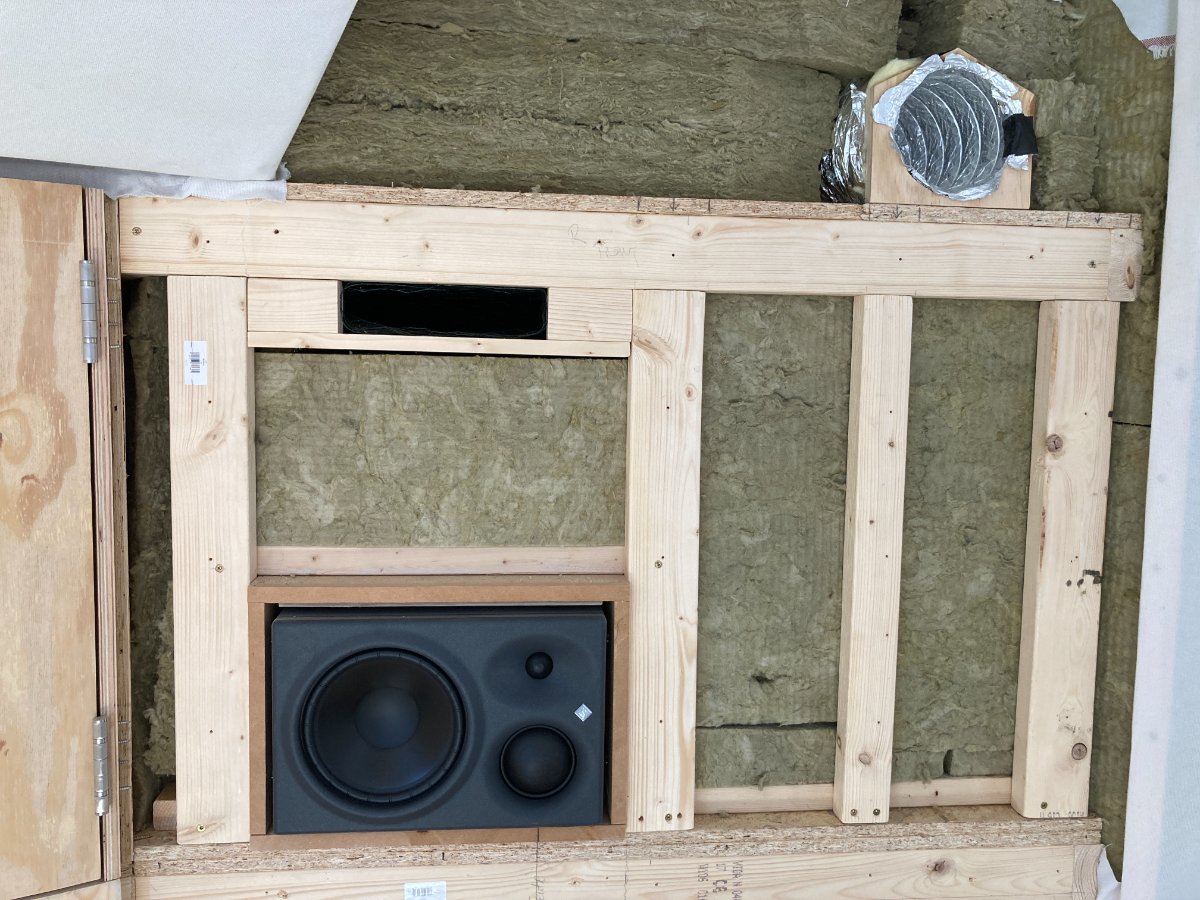The first step was to take apart those walls to implement a redesigned speaker mount, create more air flow between the cavity behind the soffit fronts and the lower cavity and add more mass to the soffit fronts. The aim was to reduce speaker vibrations from reaching and actuating the soffit walls.