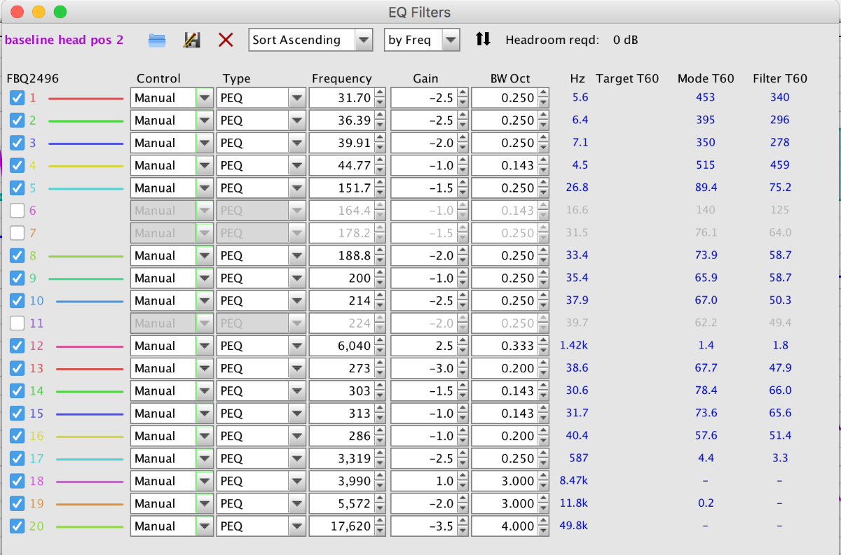 Got some other stuff to work on but I’ll return to this. Listening yesterday I preferred the sound at my mix position with the FBQ in, but need to experiment walking round the room.