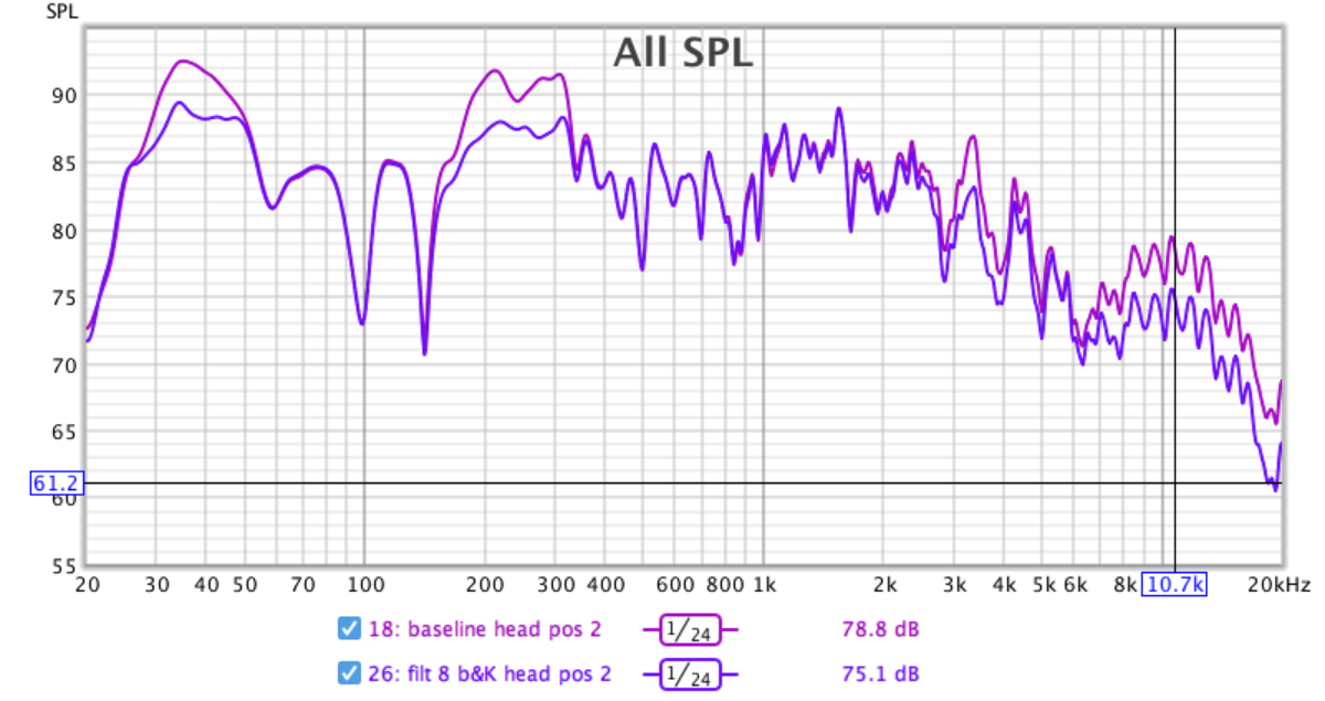 Looking at it for the B & K I noted some frequencies and the approximate SPL reduction at those points for fitting a curve to.