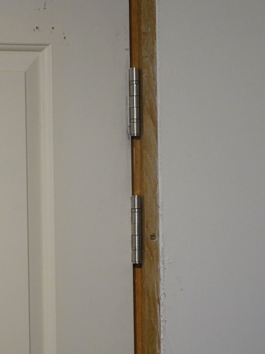 Tomorrow I'll take the door off again and add mass. I thought it would be easier to fit the new hinges, drill pilot holes etc. before adding the extra mass. Trying to do all that with a very heavy door would be a nightmare.