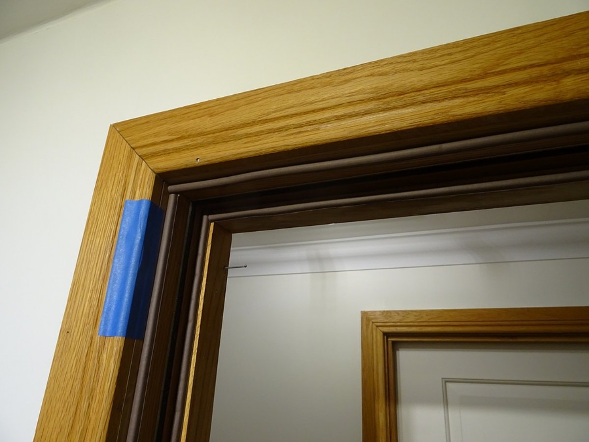 For the push side door seal I remove the hardwood "bank vault" trims before applying the seal. I held them in place so there was light compression along a foot or so of the seal without moving the fully closed door. Doing this bit by bit gives a consistent seal. A combination of sub millimeter fine tuning to ensure the seal is good by attempting to hammer thin panel pins through the trims while holding them in place was quite tricky.