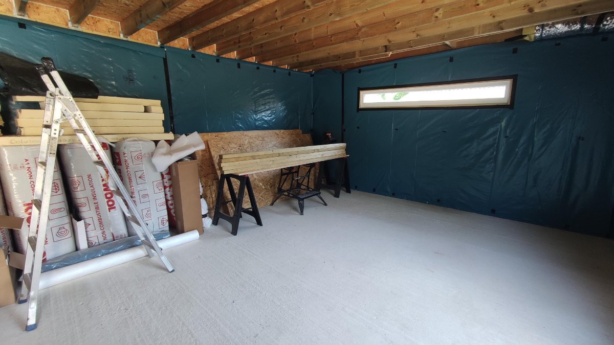 Once I receive the rockwool, I will be placing in between the external roof joists and attaching more moisture barrier holding that in place which will then be joined to the wall DPM to create a complete seal of the room. I'll also be putting insulation in the stud bays above the walls.