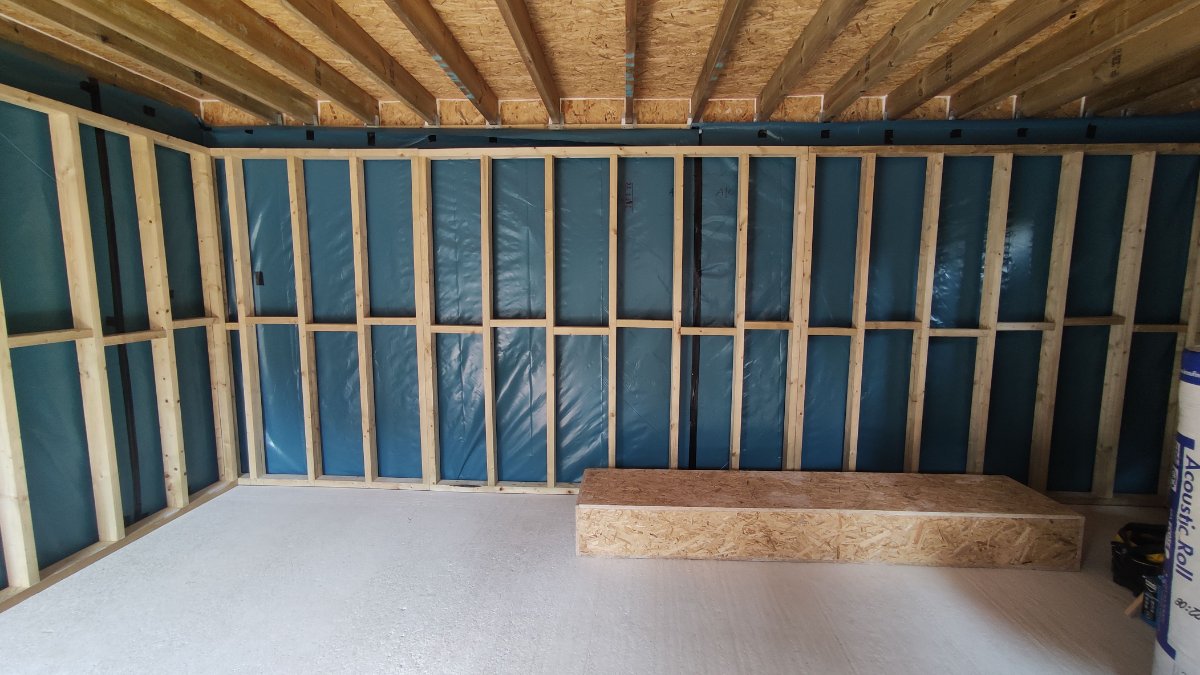 Once I receive the rockwool, I will be placing in between the external roof joists and attaching more moisture barrier holding that in place which will then be joined to the wall DPM to create a complete seal of the room. I'll also be putting insulation in the stud bays above the walls.
