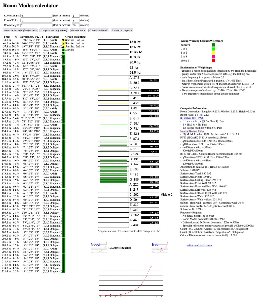 FIGURE 7-3. Room modes calculator results for the planned room dimensions