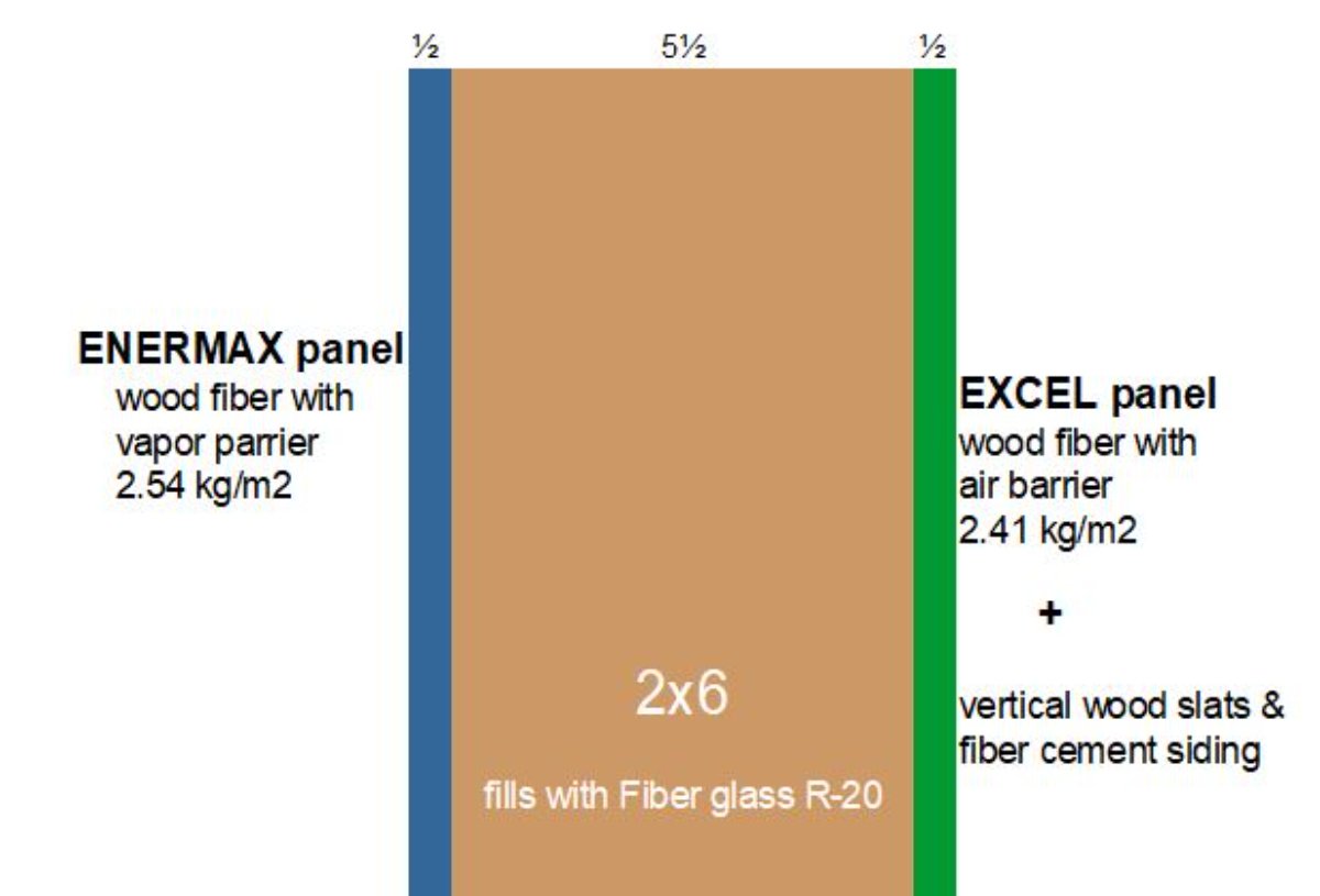 Excel II Panel (wood fiber Insulation Panel ½'', mass 16 lb/ft3, R-1.5, includes an air barrier coating)