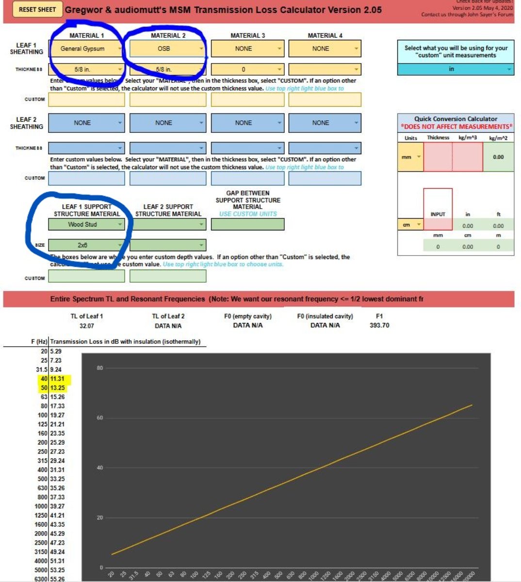 So I tried to answer the question myself. In my reading notes, I have a link to a sheet named Gregwor & audiomutt's MSM Transmission Loss Calculator Version 2.05. I then made three simulations.