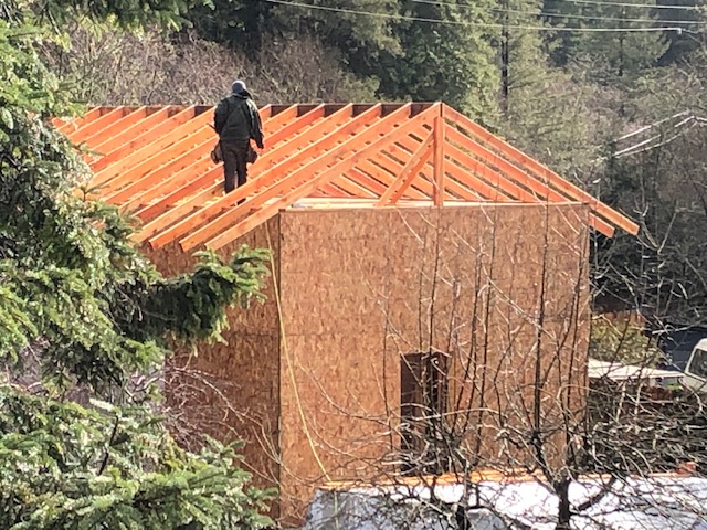 Hi all. Sorry I haven't given any updates or photos lately. I am back at work and I am up for a salary boost, which is a long process of documenting all my accomplishments the past 16 years. Life as an adjunct professor. I can say the building is moving forward. Roof done. Outside sheathing done. HVAC coming soon. Getting pressured for doors and windows to be on site so they can install them and finish the exterior with tyvek and siding. The General Contractor is still trying to get more money from me but no time now for that.