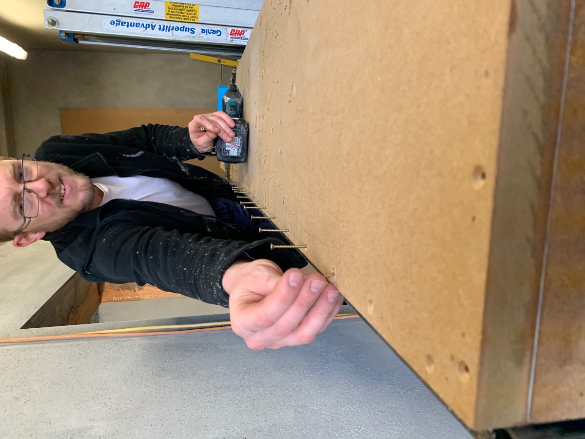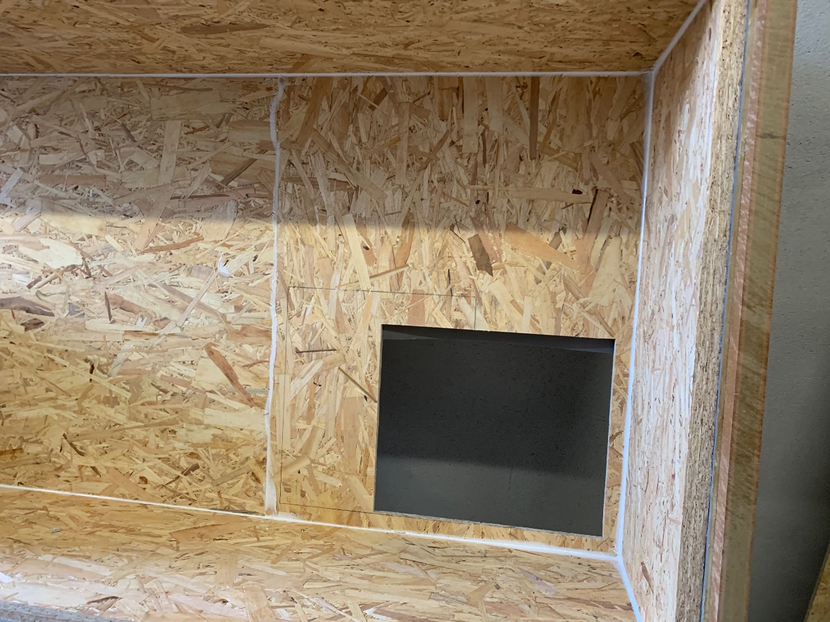 Next was the OSB. As the silencer is longer than the OSB is available, we have two sheets of 11mm so we can stagger the long joints. These were easier to measure and cut accurately. All glued, pinned then screwed but not copiously as Stuart mentioned the function of the MLV will work best if it is not held rigidly.