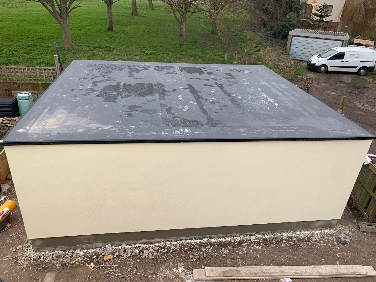 The render went on pretty well and I got the plinth base coated with high moisture resistant basecoat suitable for below dpc and ground contact conditions as the outside level will be raised a bit.