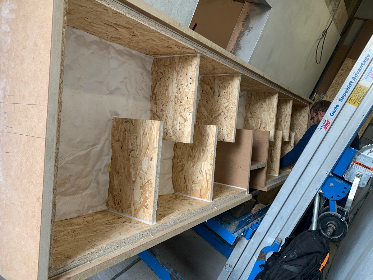The baffles were pinned and glued together and we’ll fit them next week then the duct liner and top of the box.