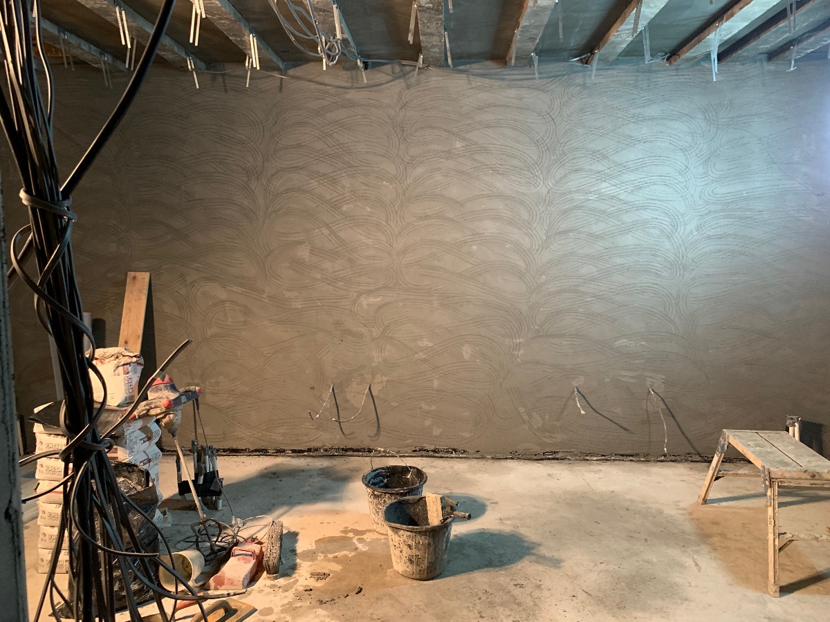 You probably don't want to hear this, but it's going to take a long time for that to dry out properly. Once you get the HVAC in, you can set it to just circulate air through the studio, and maybe dehumidify as well. Even so, it's going to take a while. Don't forget that your underlying concrete is still curing, and will be for months. Concrete reaches maximum strength after a month or two, but carries on curing for years, actually. It's a common misconception that concrete "dries", as the water evaporates, but that's not the case: concrete does not "dry"... rather, it "cures". Its a chemical reaction that takes up the water, slowly, and it takes years to fully complete, if you get down to the microscopic level and take a close look. So don't expect the room to be fully dry for a long time yet (weeks to months: not years!). Especially in your current damp environment outside, with the rain and high humidity: it takes even longer like that.with the moisture inside produced by drying our render and plaster the corridor render was damp...either from condensation dewing on the coldest parts (where the masonry is soaked from the outside) or from the soaked masonry coming right the way through! This may have been compounded by me having to take the plastic roof off as it was starting to pull the scaffolding in on itself...a job I did at night : )
