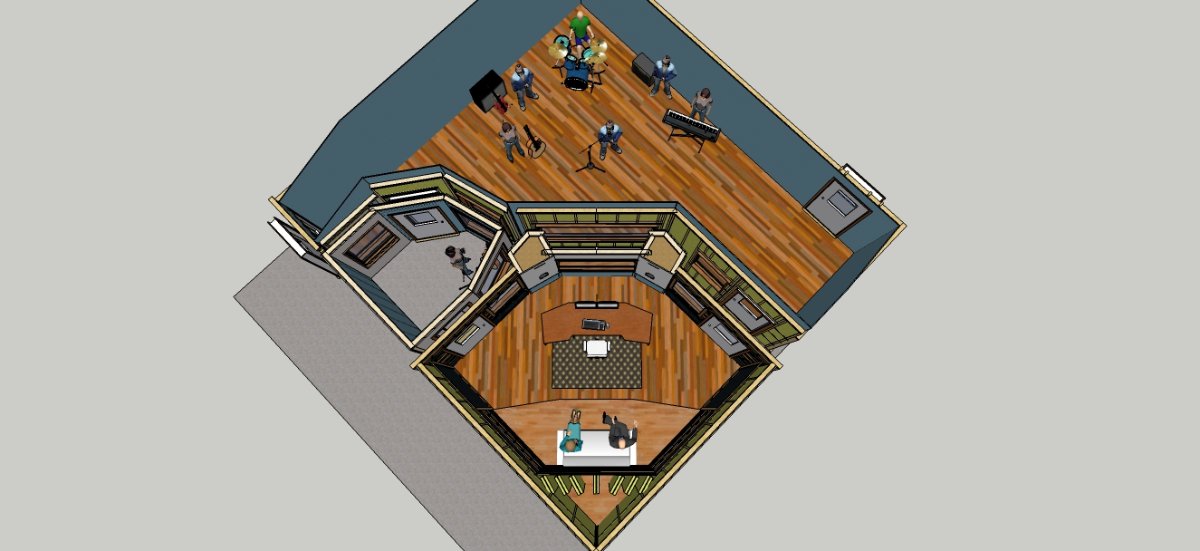 Will be able to use the Passageway as place to record as well....quoting a friend (with decades in the audio field): "Make the passage way angled like that and tile is with an angled ceiling. By opening the door into the studio you can regulate it’s natural reverb to drums and guitars. No need for speakers…. Cherokee Studios in LA had that and it was legendary. Opening the door from 2” to full was awesome."