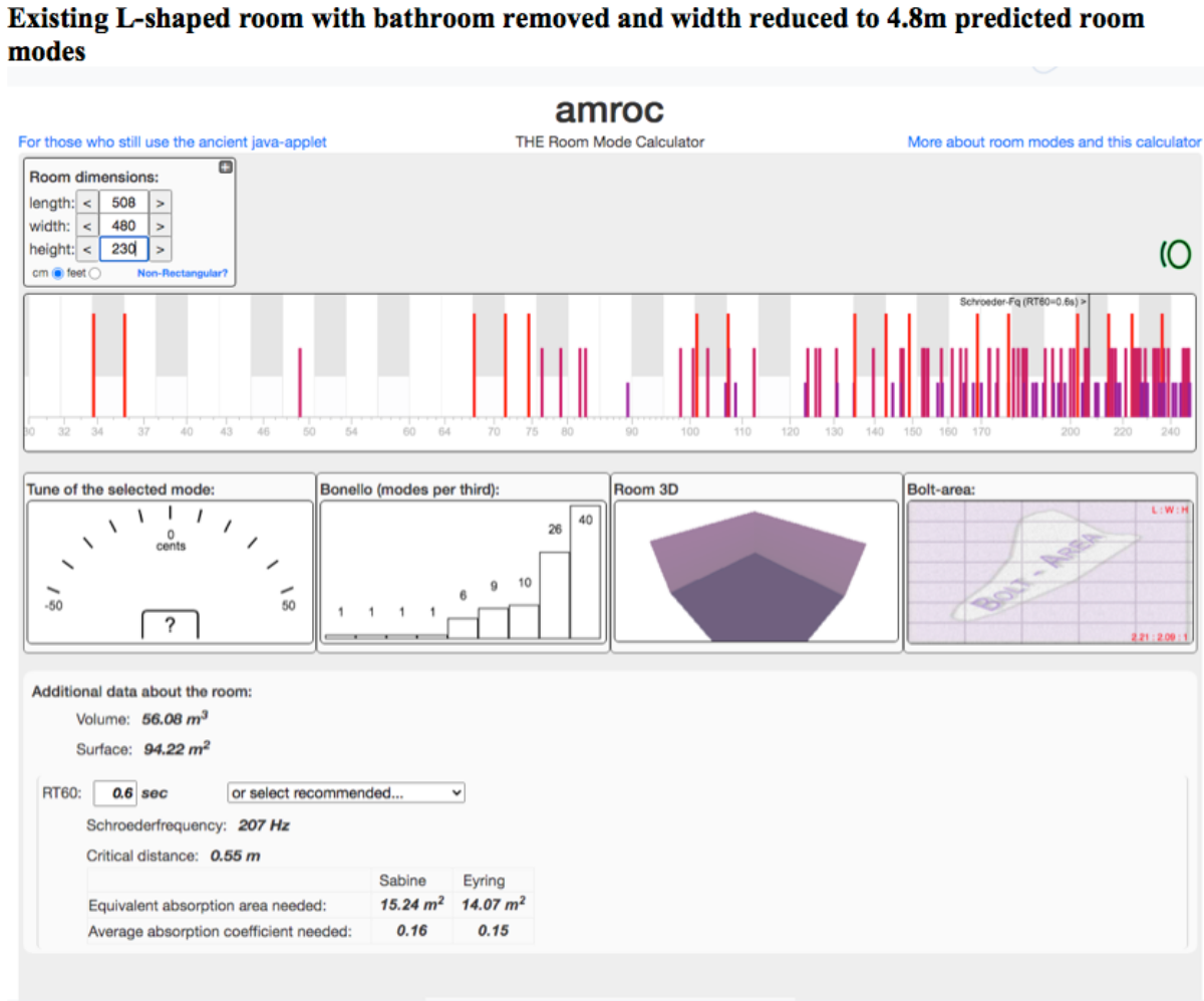 This will most likely entail removal of the bathroom in order to achieve a symmetrical shape and a reduction of the width dimension to improve baseline acoustics.