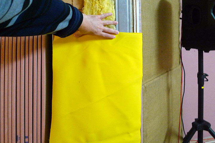 For my construction the inside leaves will be built once the outside room is made. To maximise the acoustic size of the inside room the inside walls will be built inside out, so I'll build them on the floor and then angle them up into place. So the insulation between the leaves needs to be attached to the back of the inside leaves before they are moved into place, if that makes any sense at all!